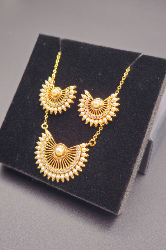 Sold outCrescent Moon Necklace Set with Pearl Accents