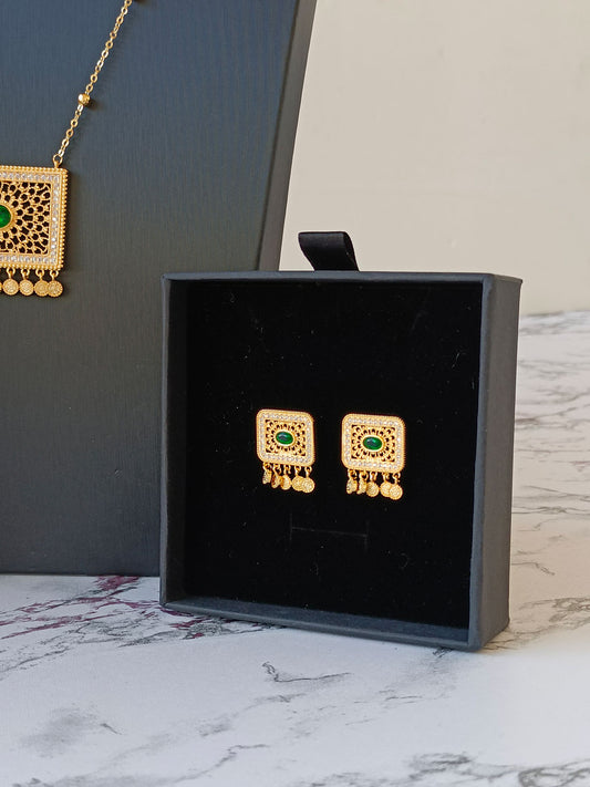 Sold outElegant Artificial Gold-Plated Jewelry Set with Green Accents
