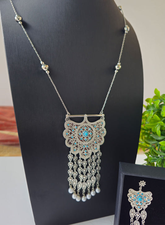 البيعطقم مجوهرات فضية قلادة وحلق | AA2419
