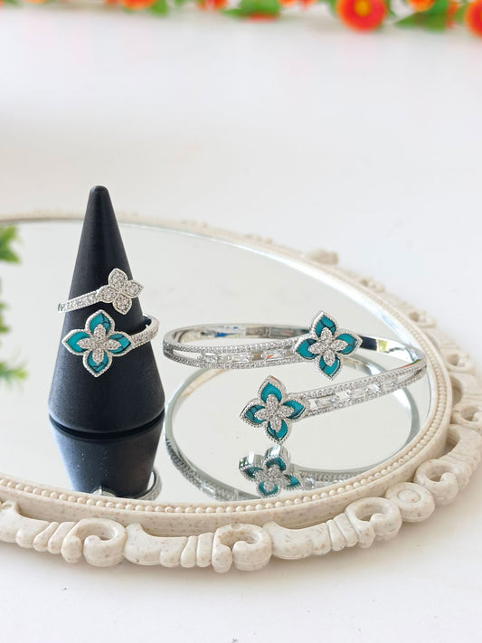 Sold outElegant Clover Design cuff and ring Set - Enamel and Zirconia Accents