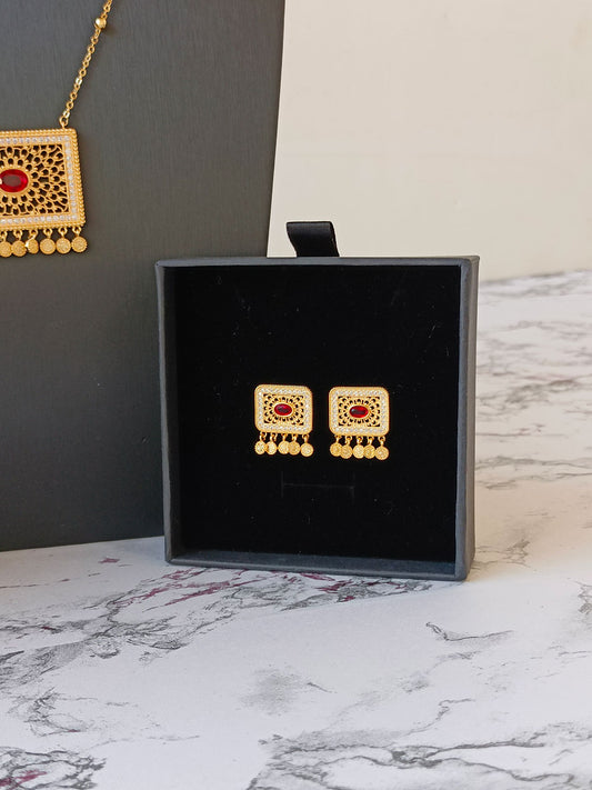 Sold outTraditional Gold-Plated Square Pendant Jewelry Set