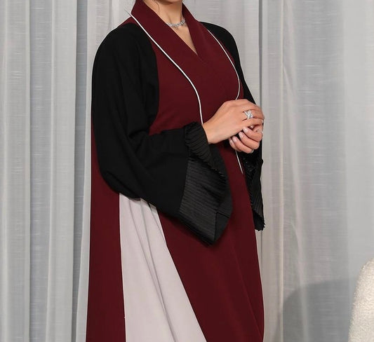 Dual Color Pleated Modest Abaya Dress | MT1020