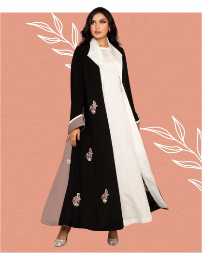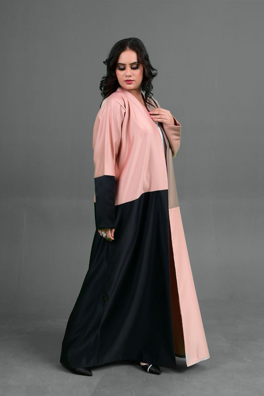 Multi-Tone Open Abaya - Trendy Color Block Design in Blush, Taupe & Black