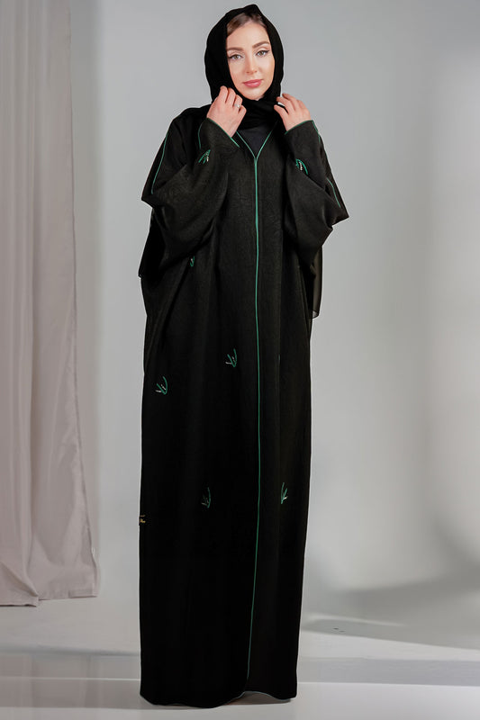 SaleBlack Bahraini Abaya with Green Embroidery
