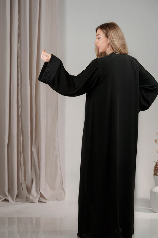 SaleBlack Handcrafted Beads Embellished Abaya
