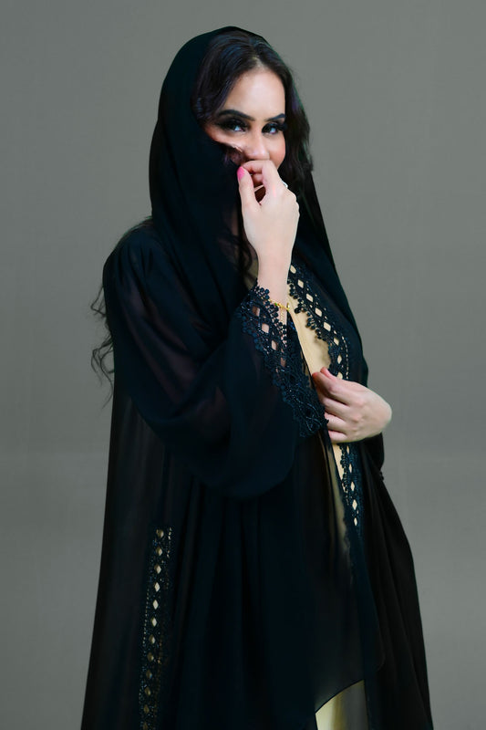 Black Applique embellished abaya