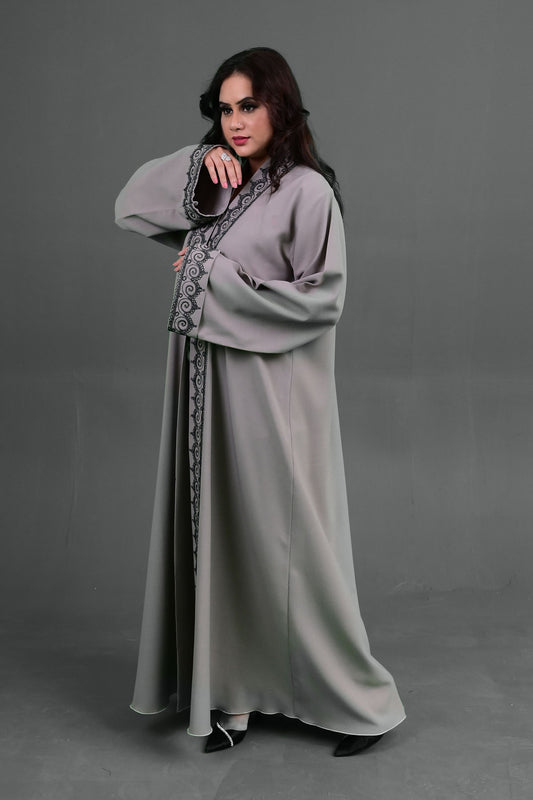 Grey Embroidered Abaya - Elegant Floral Detailing & Modest Design