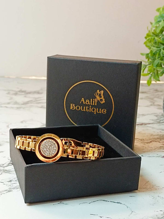 SaleElegant Gold-Plated Bracelet with Crystal Studded Dial