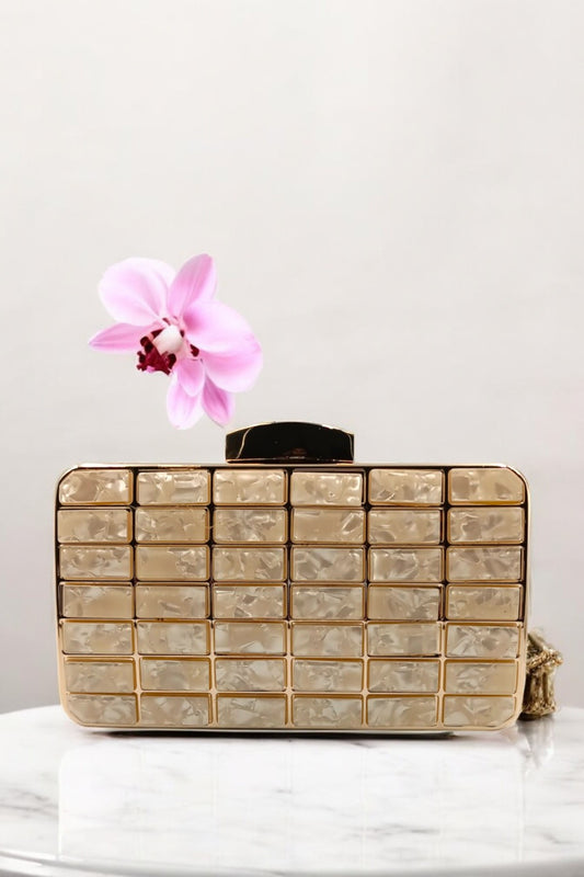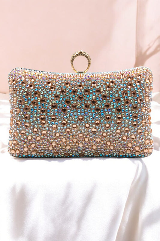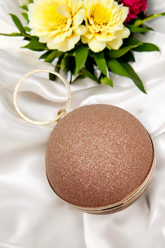 Glittering Gold Round Evening Clutch with Bracelet Handle