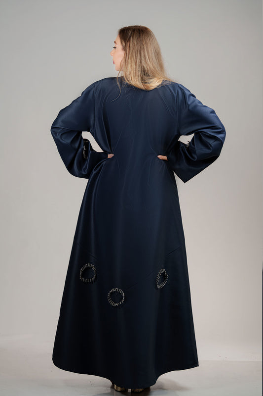 Navy Blue Abaya with Circular Beaded Embellishments