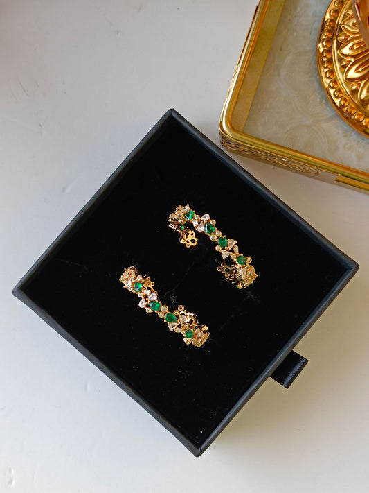 SaleGreen and Gold Hoop Earrings with Crystal Accents