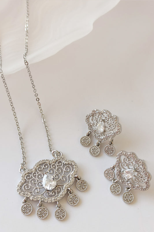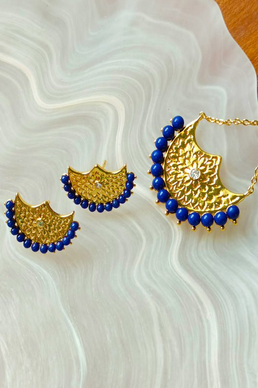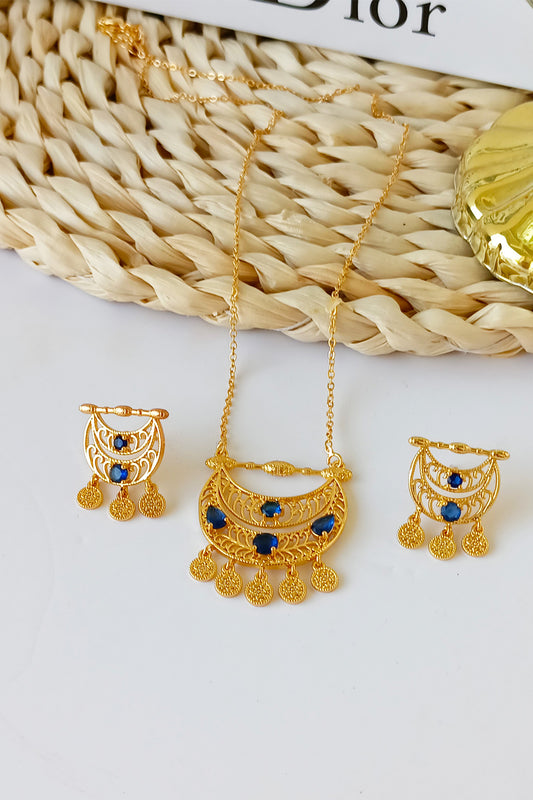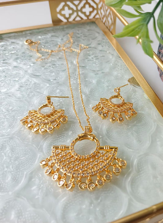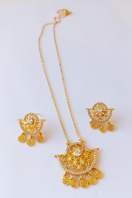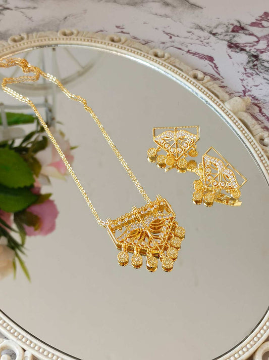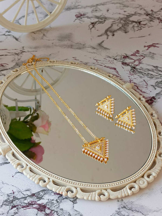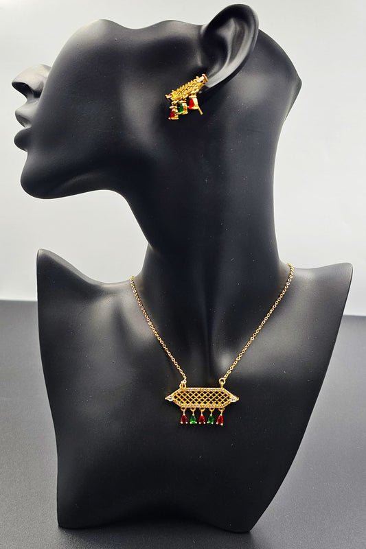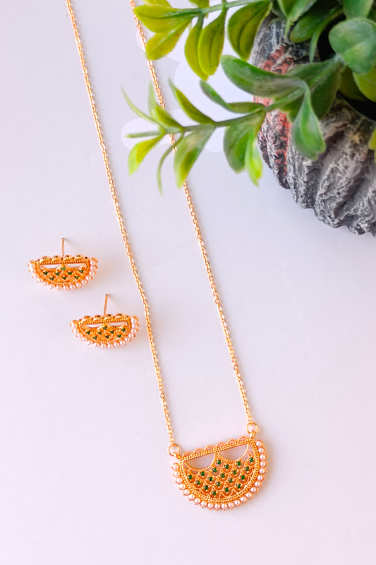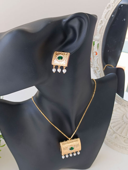 Traditional Gold Plated Necklace and Earring Set with emerald and Pearl Detailing