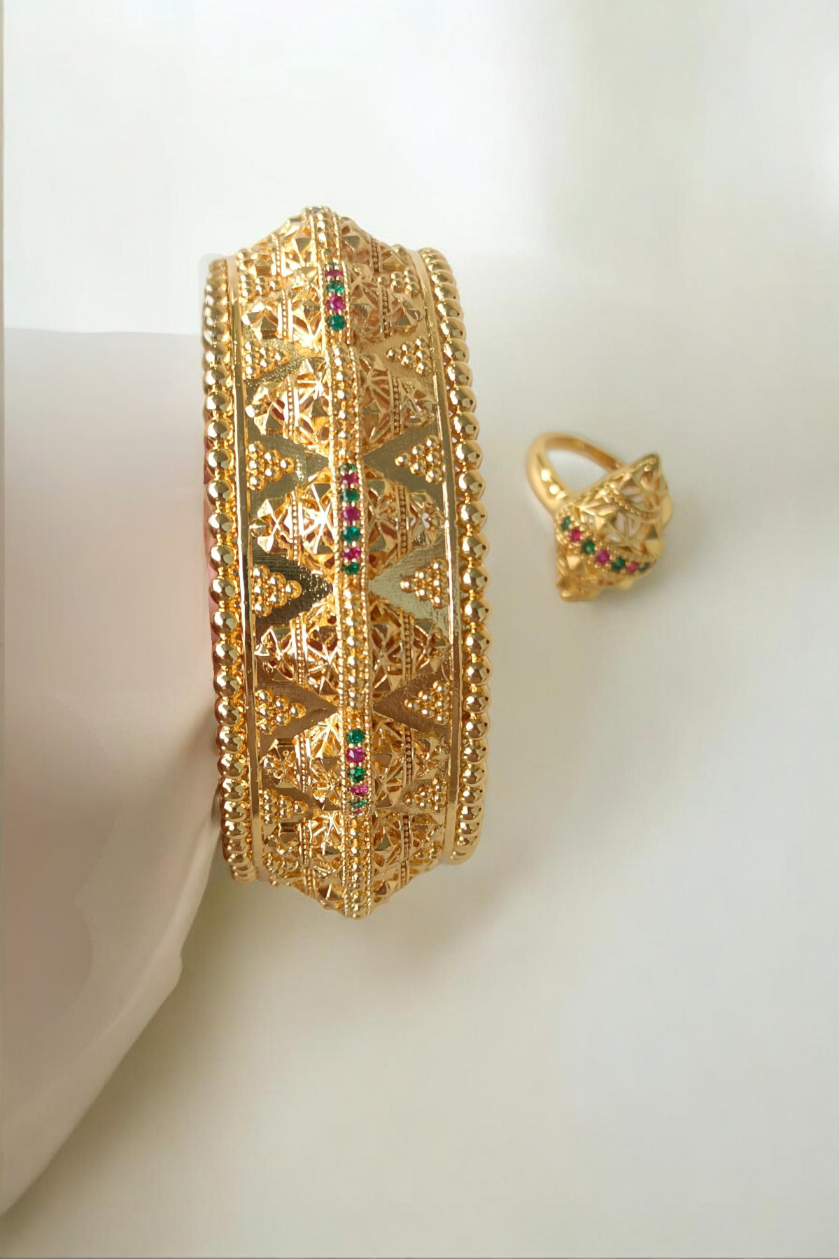 Add a romantic touch to your jewelry collection with this elegant gold heart filigree bracelet. Designed with beautifully detailed heart-shaped links, this bracelet blends classic craftsmanship with a modern, feminine style. Its radiant gold finish makes it perfect for everyday wear or special occasions.